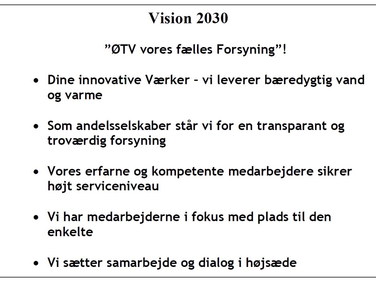 Visionen blev udarbejdet efter at bestyrelsen havde gennemført en SWAT analyse i begge forsyningsselskaber.