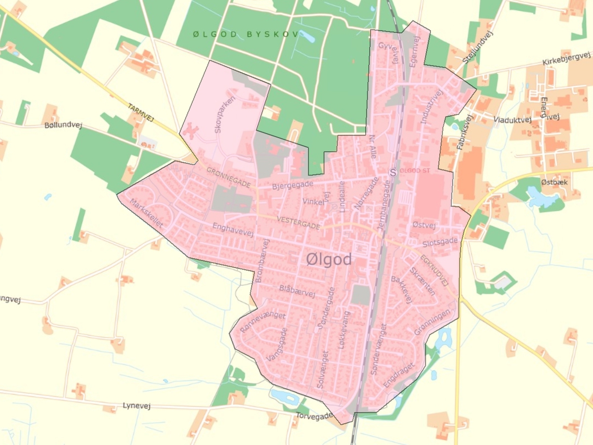Områder der i dag forsynes med fjernvarme kan ses i nedenstående kort.